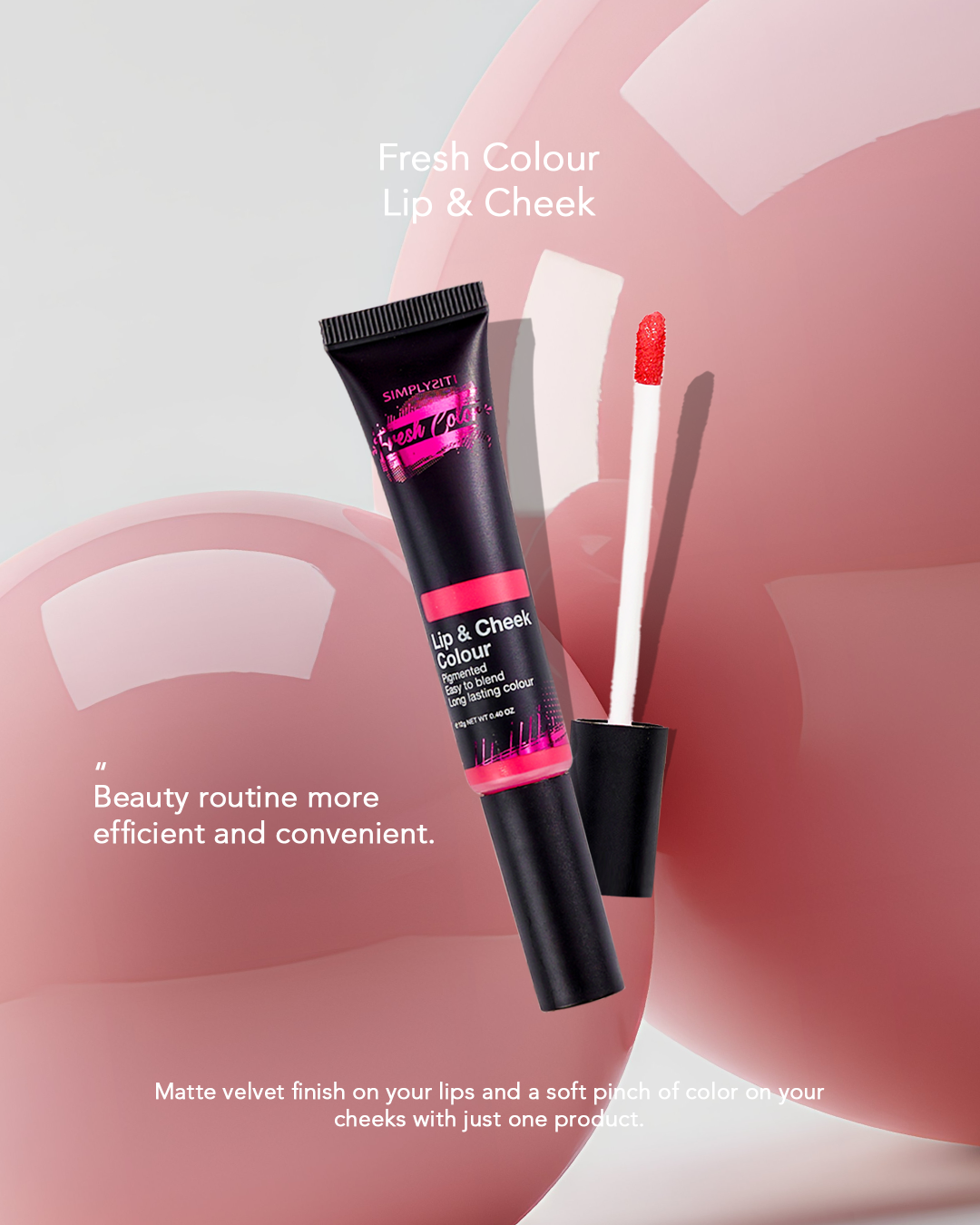 SimplySiti Fresh Colour Lip & Cheek Color is a versatile dual-role beauty product that effortlessly blends onto the skin, providing a natural flush of color for both lips and cheeks. This on-the-go essential is perfect for quick touch-ups, making your beauty routine more efficient and convenient. Achieve a smooth matte velvet finish on your lips and a soft pinch of color on your cheeks with just one product.