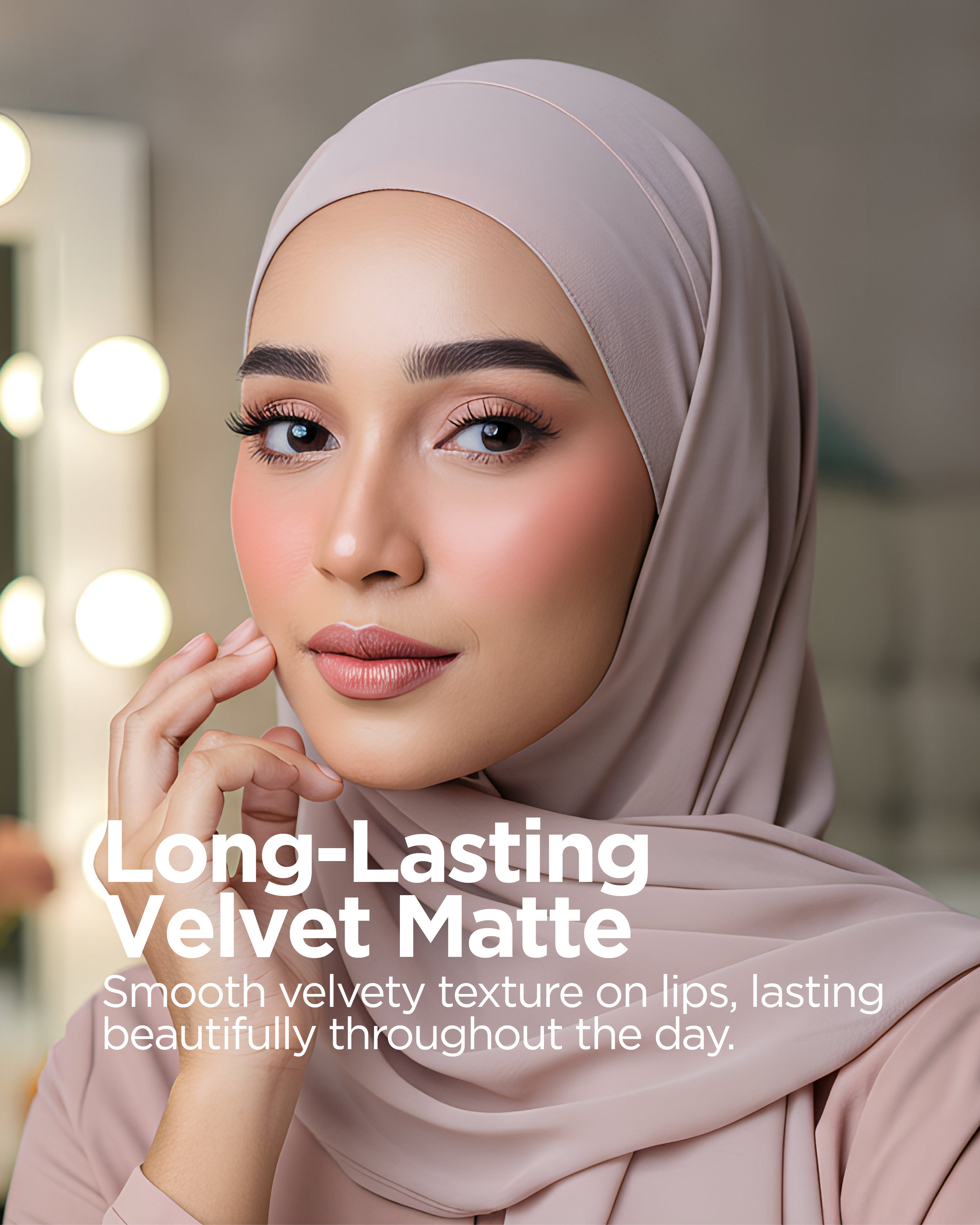 Tahan Lama dengan Matte: Memberikan kemasan matte velvet yang kekal sepanjang hari.