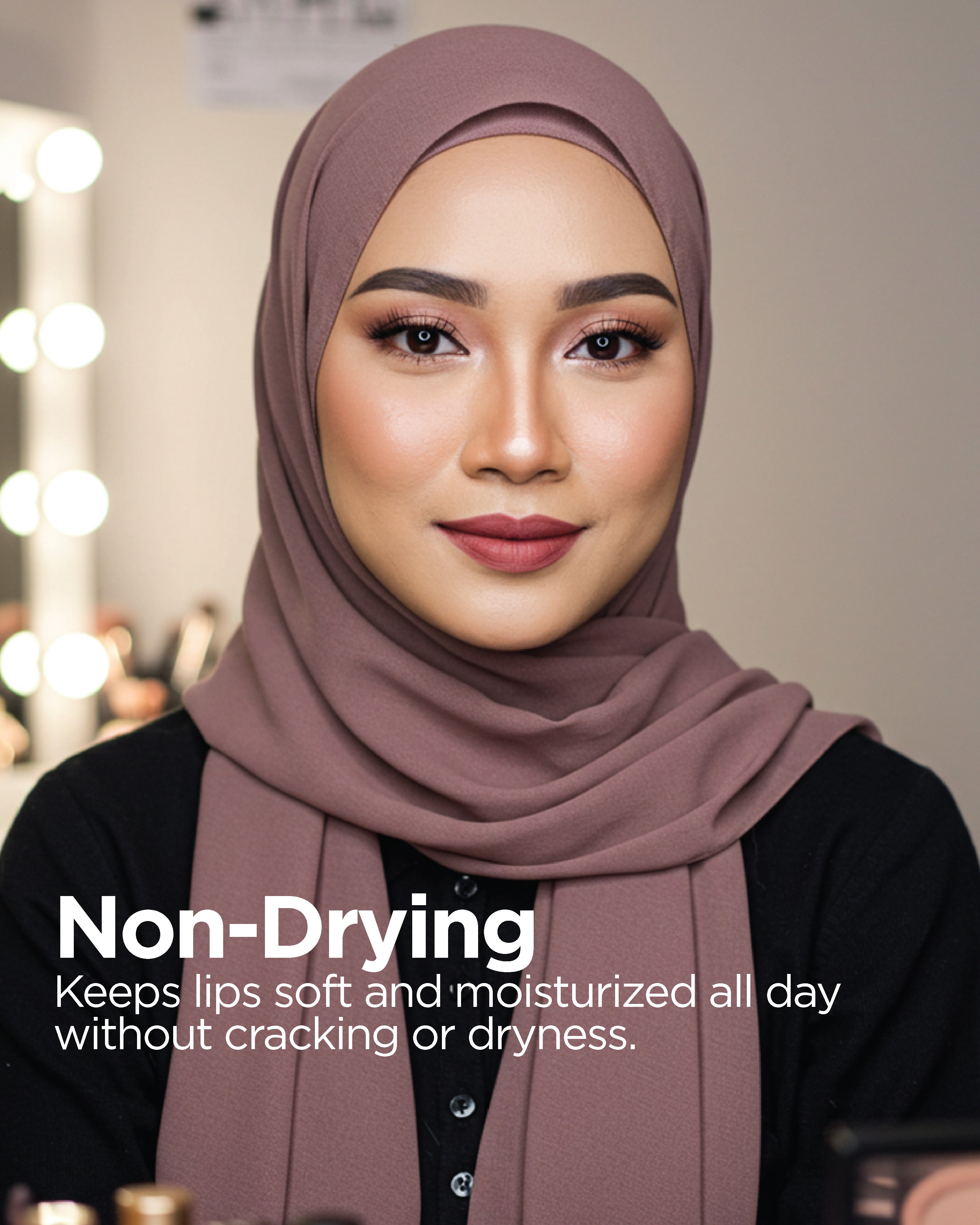 • Tidak Mengeringkan: Mengekalkan bibir lembut dan terhidrat sepanjang hari.